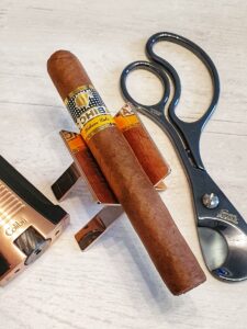 Die Siglo II stammt aus der Línea 1492, jener Cohiba-Reihe, die nicht mit Kraft protzt, sondern eher mit dem feinen Florett daher kommt. Kubanischer Gentleman statt Sergio Oliva (kubanischer Kult-Bodybuilder). Mit 12,9 cm Länge, Ringmaß 42 und Marevas-Format ist sie kompakt, elegant und bewusst nicht einschüchternd. Das feinadrige, mittelbraune Deckblatt ist ein Augenschmeichler. Eine Zigarre, die man raucht, ohne ihr den ganzen Abend auf dem eiskalten heimischen Balkon widmen zu müssen. Rund 55 Minuten reichen völlig, um zu verstehen, warum sie als Klassiker gilt.