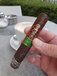 Im letzten Drittel bleibt die aromatische Signatur ebenfalls konstant: Holz, Kaffee, Kakao und weißer Pfeffer – eingebettet in einen mittelkräftigen bis kräftigen Körper. Die Stärke ist im oberen Mittelfeld angesiedelt, ausreichend präsent, ohne allzu aggressiv zu wirken. Der Rauchverlauf zeigt Charakter, aber keine dramaturgische Entwicklung. Wer Vielfalt und Überraschung sucht, könnte sich mehr Wandel wünschen; wer Konstanz und Klarheit schätzt, findet hier eine ehrliche, gradlinige Begleiterin.